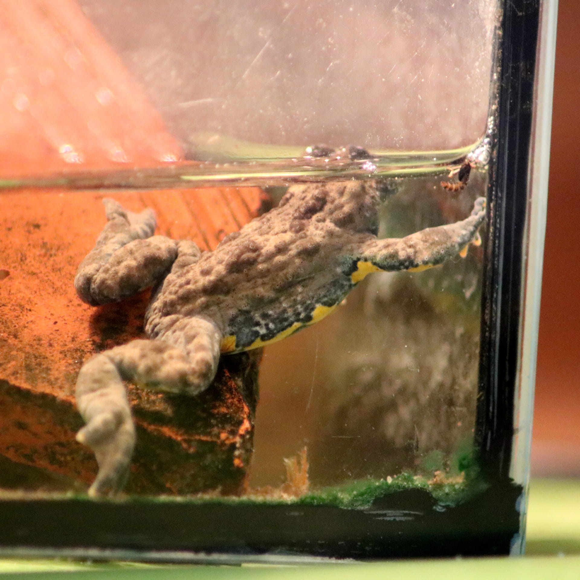 Zurück zum Schulbiologiezentrum. Die zahlreichen neuen Gelbbauchunken sind ausgewildert und haben hoffentlich schon einen guten Platz zur Winterruhe gefunden. Unsere Zuchtexemplare dagegen, genießen noch ein bisschen den Spätsommer im Terrarium. Sie sollen jetzt langsam abkühlen und dann einige Wochen Winterruhe im Kühlschrank verbringen. Mir gelangen ein paar schöne Fotos, die mein Versprechen „mehr Tiere zu zeigen“ in etwas gnädigeres Licht rücken.